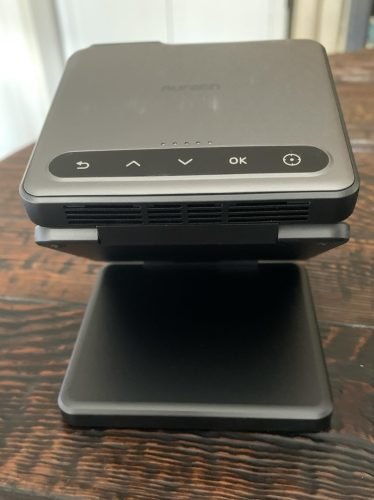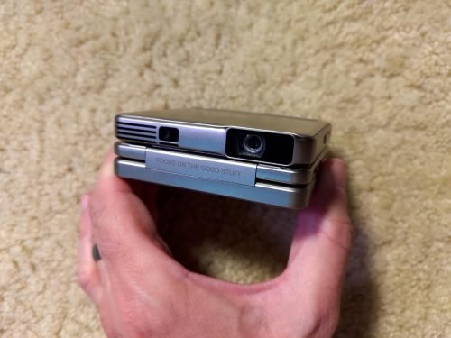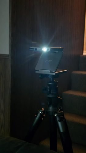 It’s also really cool that the fact that it can fold up also makes it kind of function as its own tripod so that you can have a steady screen mirror mirroring experience. Well, it doesn’t come cheaply, the value that it brings for business Travelers to be able to at any time suddenly set up a projector in a conference room is really impressive. The only caveat is that you do want to make sure that the room is fairly dark because the projection is only so bright. Recommended!