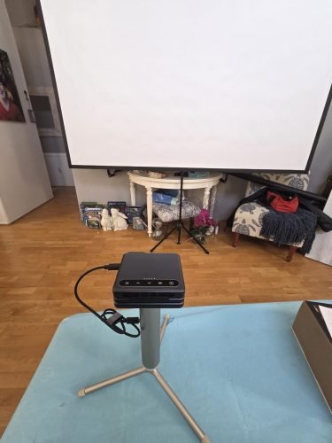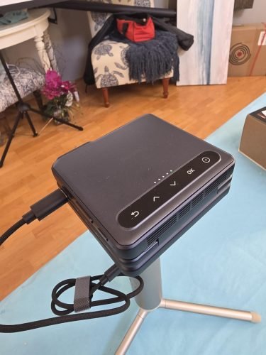 What makes this projector especially appealing is its portability. It slips easily into a pocket, purse, or travel bag, so you really can take it anywhere. My wife and I have been using it for the past week and it’s been great for movie nights at home. We’re especially excited to bring it along on camping trips—it’s compact, easy to set up, and makes watching movies outdoors possible without hauling around bulky equipment.
