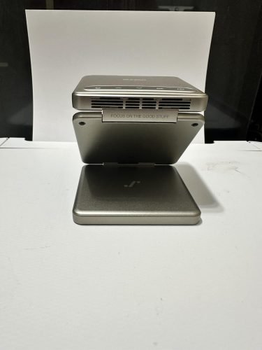 After several days of using the projector, my first though when unbox it is amazing looking device , first time in my life see a device so small and portable like a smart flip phone but it is a projector , can not believe what it can do in the tiny shell, it actually good for team work project or phone entertainment moment, unfortunately the battery is a limit, but that is understandable when you put everything into a tiny portable projector so can not ask for a larger battery then, wonderful thing is you can plug it in and play it at the same time, so run out of battery won’t be a problem.