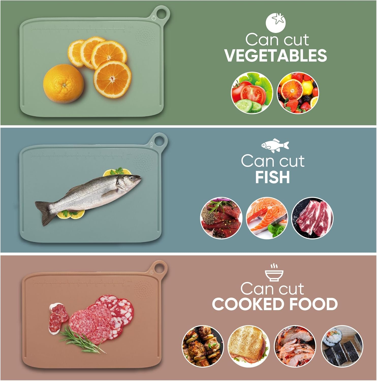 I love the inclusion of three color-coded chopping boards, each designed for different types of food. Whether it's raw meat, raw fish, vegetables, or cooked food, the color-coded index makes it easy to know which board to use. Plus, the non-slip surface on the fish cutting board is a nice touch.