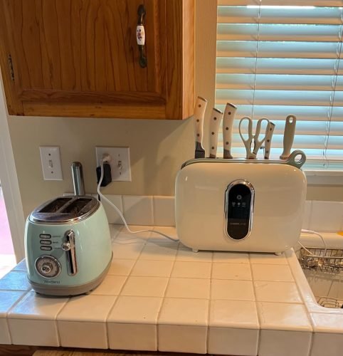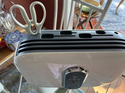 So let me gush about all the things I like about this . It looks very cool and modern and we have already gotten compliments on it. We have limited kitchen countertop space so at first I was worried this would take up too much room but it doesn’t; I have attached some photos so your a see how it looks.