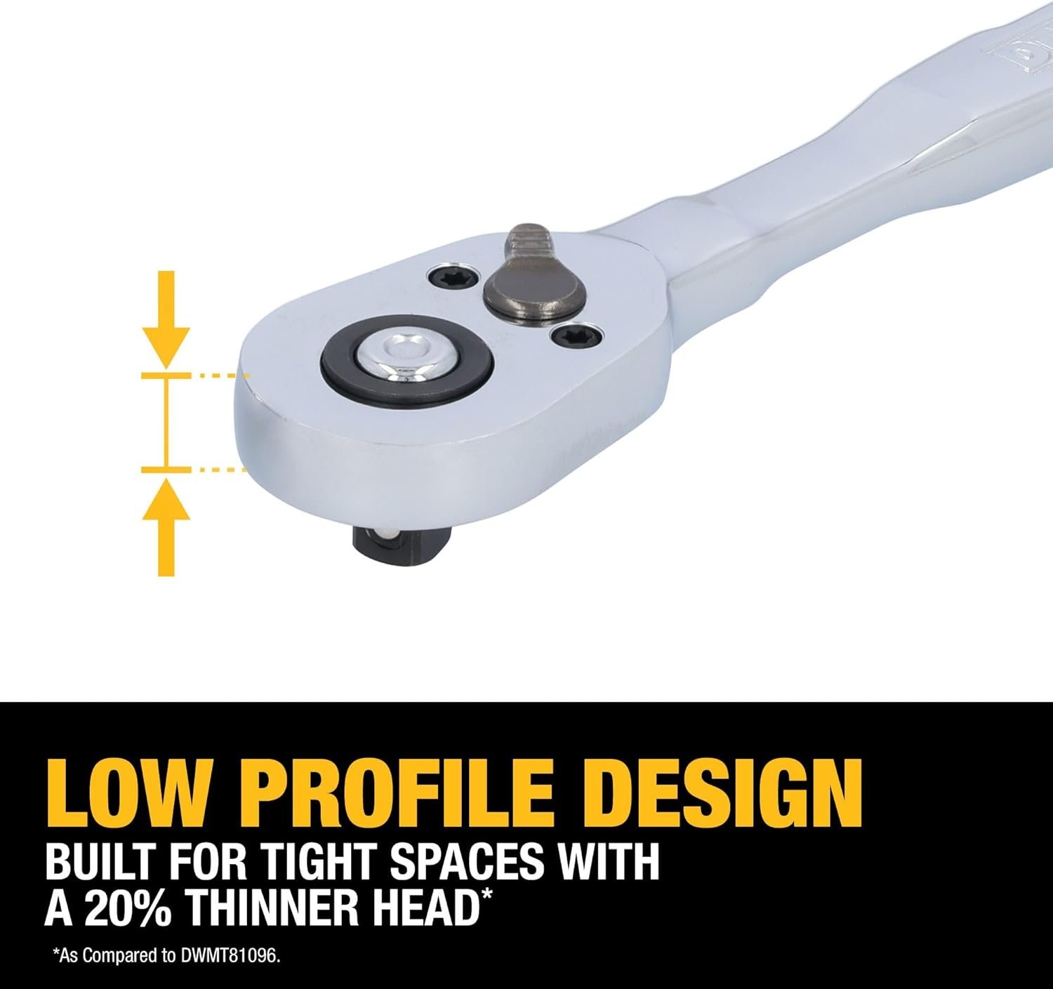 • Built for tight spaces – get into tight spaces with a low-profile ratchet design and a 20% thinner head*.