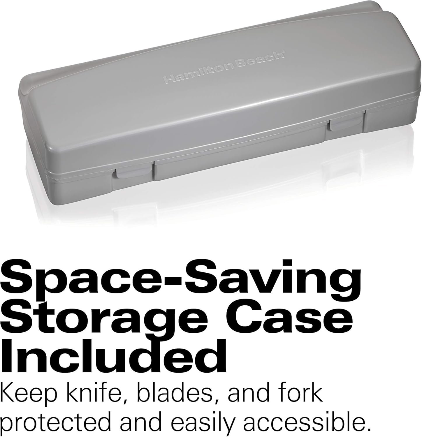 Hamilton Beach Electric Knife Set for Carving Meats. Poultry. Bread. Crafting Foam & More. Reciprocating Serrated Stainless Steel Blades. Ergonomic Design Storage Case + Fork Included. 5Ft Cord. White