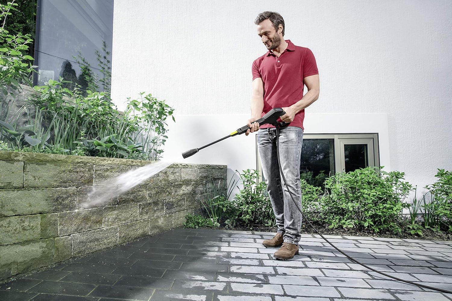 Un aspetto positivo della Kärcher K 3 è l'efficienza nel consumo d'acqua ed energia. Rispetto alla pulizia manuale con tubo da giardino, questa idropulitrice utilizza molta meno acqua per ottenere risultati molto migliori, il che è sia economico che ecologico.