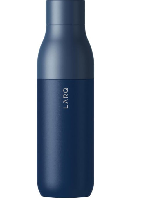 The LARQ Bottle PureVisis the self-cleaning water bottle and water purification system. It uses PureVis technology to eliminate up to 99%* of bio-contaminants such as E. coli from your water and bottle.