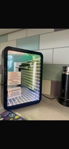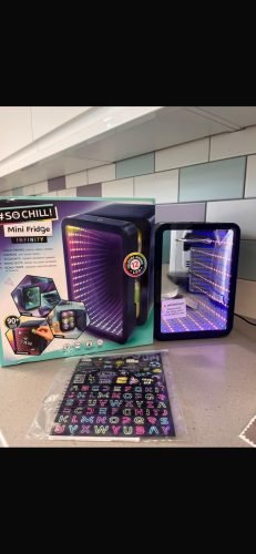 So Chill Mini Fridge Infinity Effect. Gamers. Students. Home/Car trips/Hangouts + More. USB Powered. Stickers Included. 4L/6 Cans. Mirror Infinity Effect Door photo review